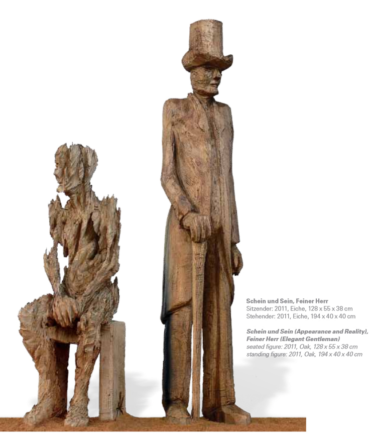 Seine aus Holz gesägten Skulpturen ermöglichen einen Zugang zur Vergänglichkeit und Zerbrechlichkeit des Menschen. „Er schaut durch die Oberfläche hindurch, die Fassade, die Maske und die Rolle, und heraus kommen zwei extreme Pole unseres Seins: unsere Verletzlichkeit und zugleich die latent vorhandene Bereitschaft, andere zu verletzen.“[ii]