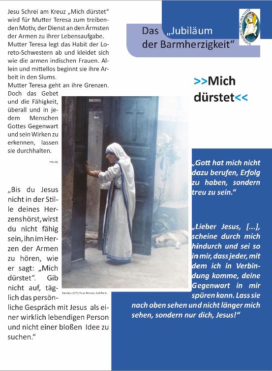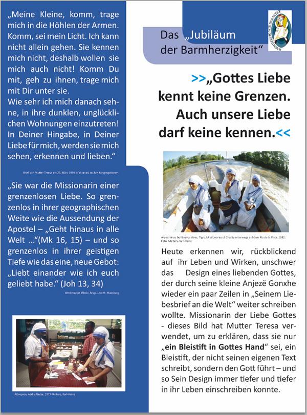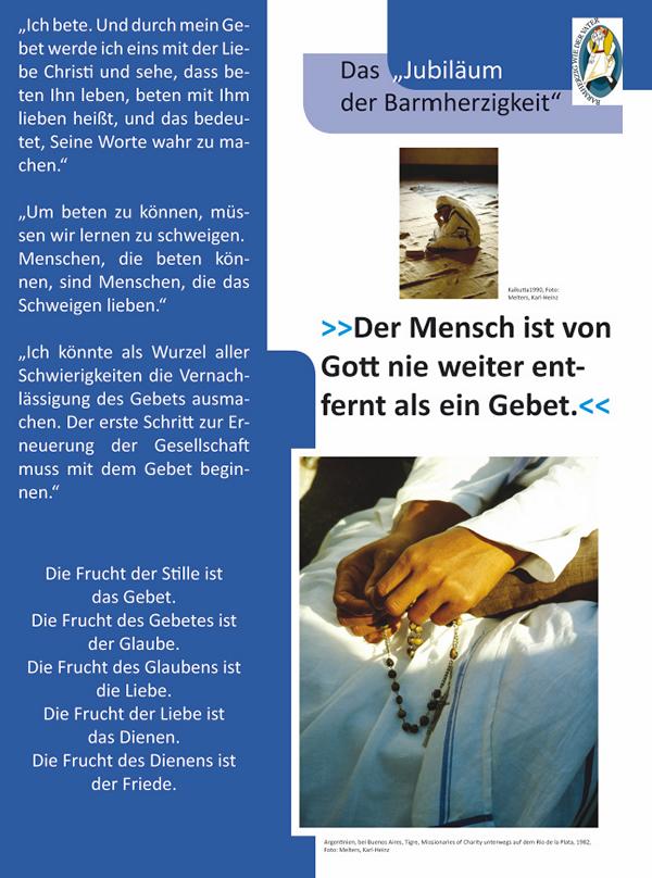 Zur Heiligsprechung von Mutter Teresa am 4. September wird in der Stadtkirche Bruchsal die Ausstellung ergänzt. Anbei sehen Sie einige Tafeln und eine kleinen filmischen Homeage.
