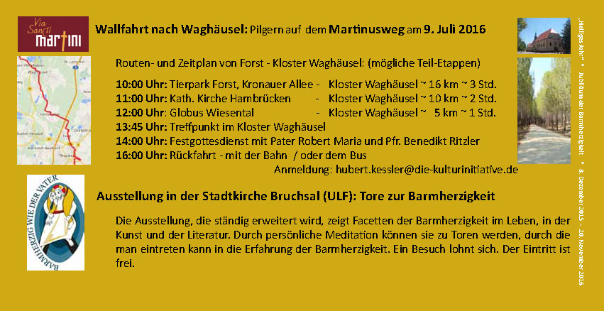 9.7.2016 Wallfahrt Martinusweg Von Hubert Keßler Samstag, 9. Juli 2016 Wallfahrt nach Waghäusel Pilgern auf dem Martinusweg am 9. Juli 2016 Weiter Hinweise folgen.
